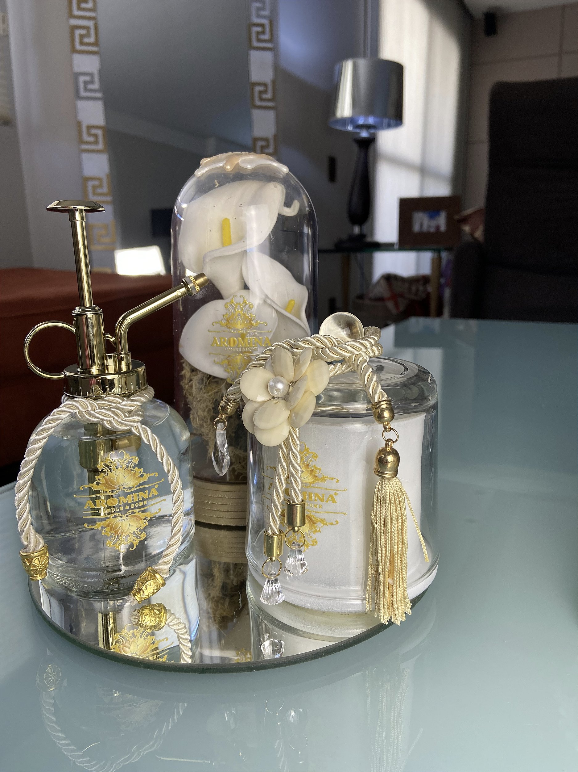 Luz pura, cristalina envolto no reflexo do dourado da cúpula aliando delicadeza de um instante a modernidade de um ambiente.Uma cúpula que guarda a alma de um aroma com design de luxo
